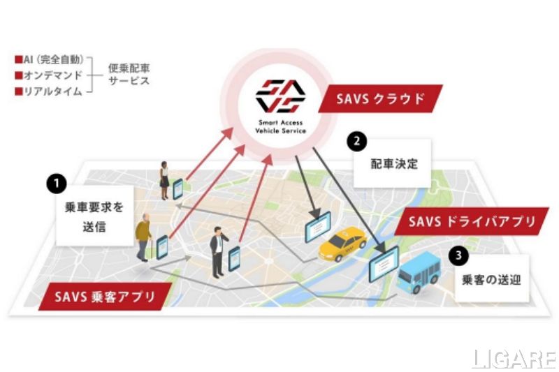 具体的には、秩父市では、既存の乗合タクシーサービスにAIデマンド運行システム「SAVS」を導入し、AIデマンドタクシー「あいAIタクシー」の運用を開始する。「SAVS」は、株式会社未来シェア(以下、未来シェア)が提供するシステムだ。車両と人・物の移動状況において、全ての空間移動と希望時間を同時に満たす車両の走行ルートを決定することができる。