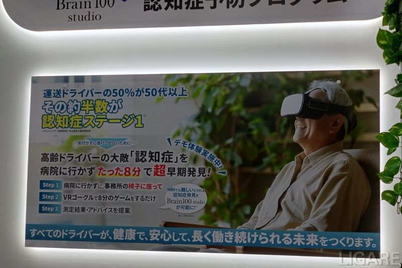 日野コンピューティングシステムは、「Brain100 studio」を提供するMIG社とパートナー契約を結んでいる。このBrain100 studioは、脳健康VR測定と予防支援を目的としたもので、空間内で自分のいる位置をどれほど正しく認識できているかを測定するゲームだ。認知機能の評価をしてくれるほかにも、認知症の予兆発見や生活習慣の改善にも効果があるという。日野コンピューティングシステムの強みは、日野自動車のグループ企業ということだ。このゲームも運送事業者のドライバーをメインターゲットに見据えている。トラックドライバーの平均年齢は高齢化が進んでおり、50歳を超えている現状だ。しかしこの年齢層が今後も現役世代として働き続けなければ、日本のインフラは成り立たなくなる。同社はそんな懸念を抱き、「Brain100 studio」 の展開を進めているという。