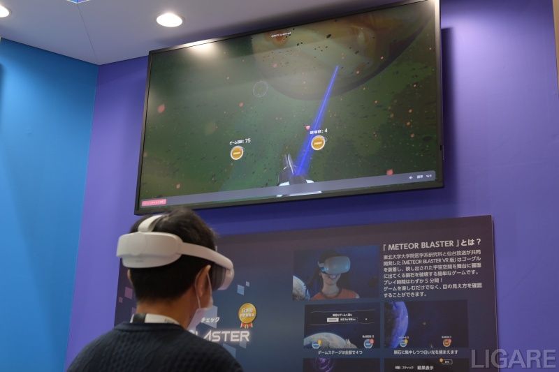 仙台放送は、東北大学加齢医学研究所(川島隆太教授)と「運転技能向上トレーニング・アプリAI版」を含む新しい脳のトレーニング「BTOC(ビートック)」を共同開発。このトレーニングを日本交通のタクシー乗務員や相鉄バスのバス乗務員などに提供している。日本交通は、持続的な実施にくわえて、運行管理者がスコア変化を見ることにより、コミュニケーション向上や個人面談指導の設定にも生かしているとのことだ。さらに、仙台放送は、東北大学大学院医学系研究科との共同開発により、「METEOR BLASTER VR版」という隕石などを破壊するゲームも作成した。このゲームを片目でそれぞれ行うことにより、どの場所の認識が弱くなっているのかを調べることができる。認識が弱いということは、弱い場所から車や歩行者が飛び出してきたときに気付くのが遅いことを意味する。見えにくい箇所を事前に知っておくことで、事故を抑制することが可能になるという仕組みだ。