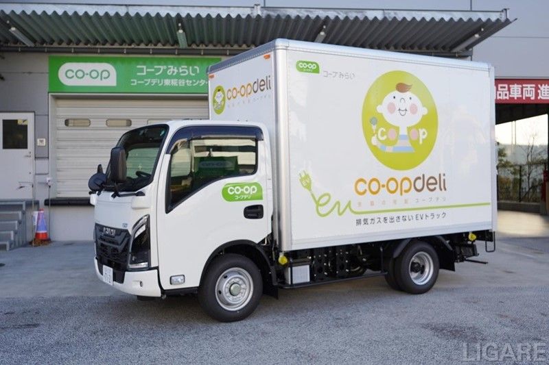 コープみらいは、組合員宅への配送用として初のEVトラックを導入し、環境への取り組みを加速させている。今回導入されたのは、いすゞ自動車の「エルフミオEV」で、車両重量3.5トン未満の小型トラックである。