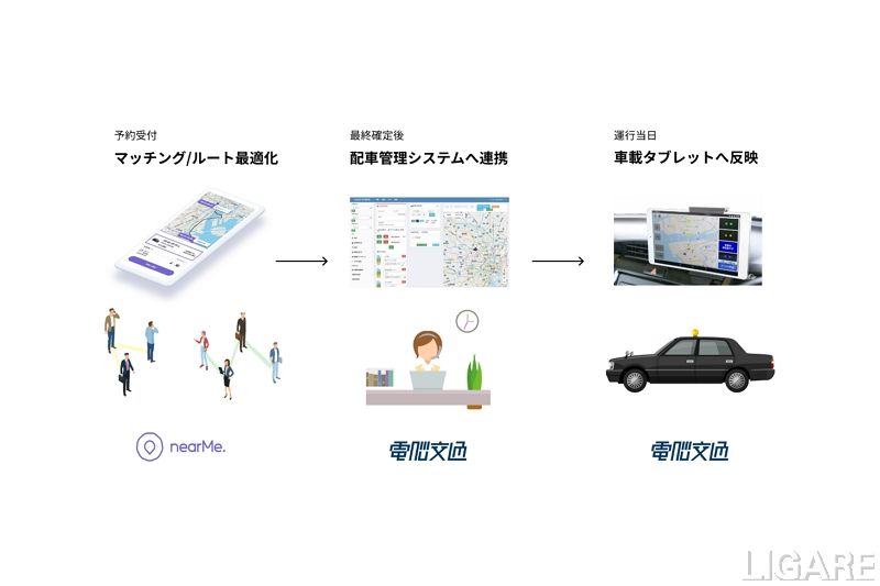 電脳交通とNearMeがシステム連携、運行管理が1つのシステムで可能に