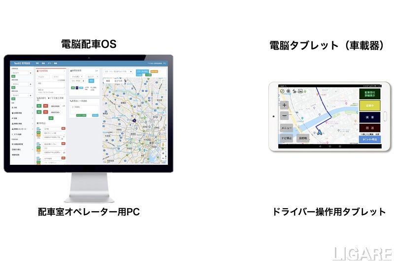 電脳交通の事前確定運賃サービスは、これまでのように特定の配車アプリを利用しない。利用者が電話でタクシー配車を注文すると、配車室のオペレーターは運行ルートと運賃を迅速に算出できる。これにより、利用者に運賃を伝えると共に、配車する車両に搭載されたタブレットへ配車指示を送信することが可能だ。