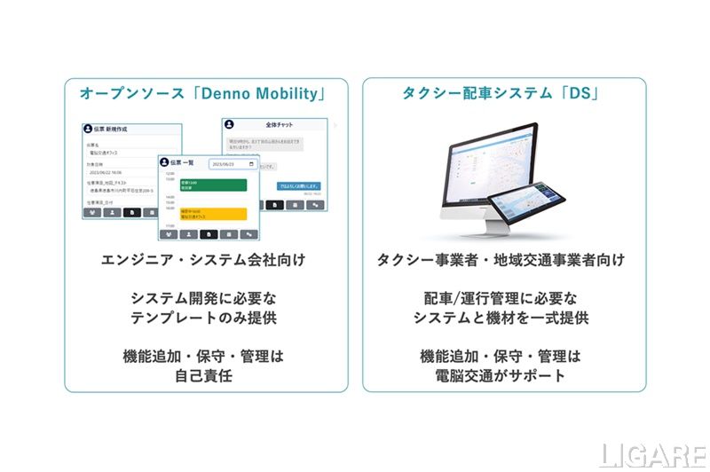 Denno Mobility(仮)は、電脳交通が創業以来30を超える地方自治体と共同で取り組んだ地域交通に関する実証実験や、デマンド交通サービスの開発・運用で培ったノウハウを基にしたものだ。地方自治体や多くのITベンダーやエンジニアが運行管理システムを開発可能な汎用的基盤をオープンソースで提供する。