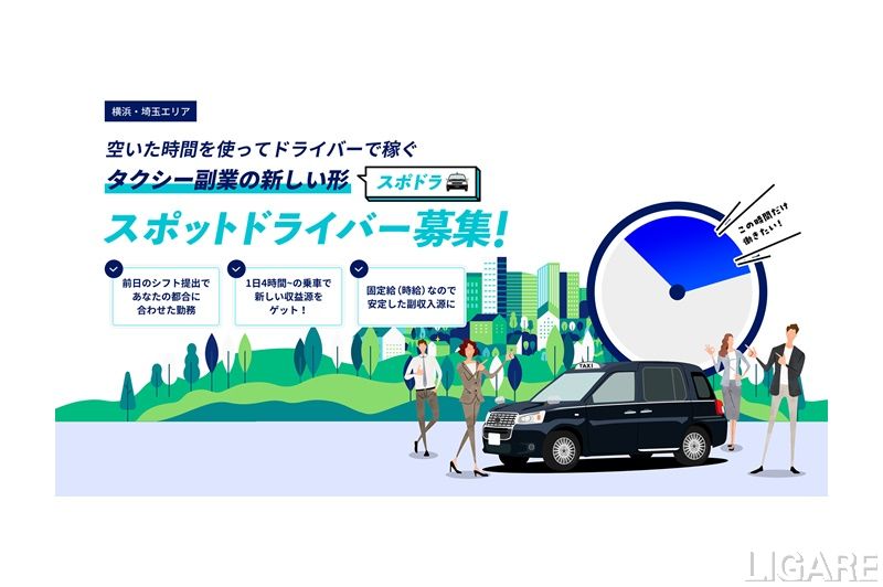株式会社電脳交通(以下、電脳交通)は11月10日、二種免許保有者を対象に、空いた時間に副業でタクシー乗務員として収入を得られる実証実験「スポドラ」開始を発表した。