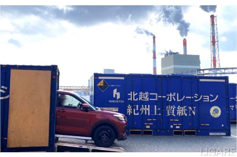 今回の取り組みでは、北越コーポレーションが課題としていた復路の空コンテナ輸送区間の京都貨物駅(京都府京都市)から焼島駅(新潟県新潟市)において、ダイハツの小型自動車を積載する新たな輸送スキームを、日本通運とJR貨物の協力により構築。2月より北越コーポレーション、ダイハツによる異業種ラウンドマッチング輸送を開始している。