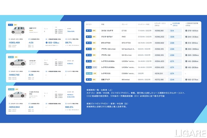 株式会社ディー・エヌ・エー(以下、DeNA)は、EVの実用航続距離や導入効果予測を見える化するEV転換シミュレータ「FACTEV(ファクティブ)」をオートリース会社向けに4月1日から試験提供を開始する。3月27日付のプレスリリースで明かした。