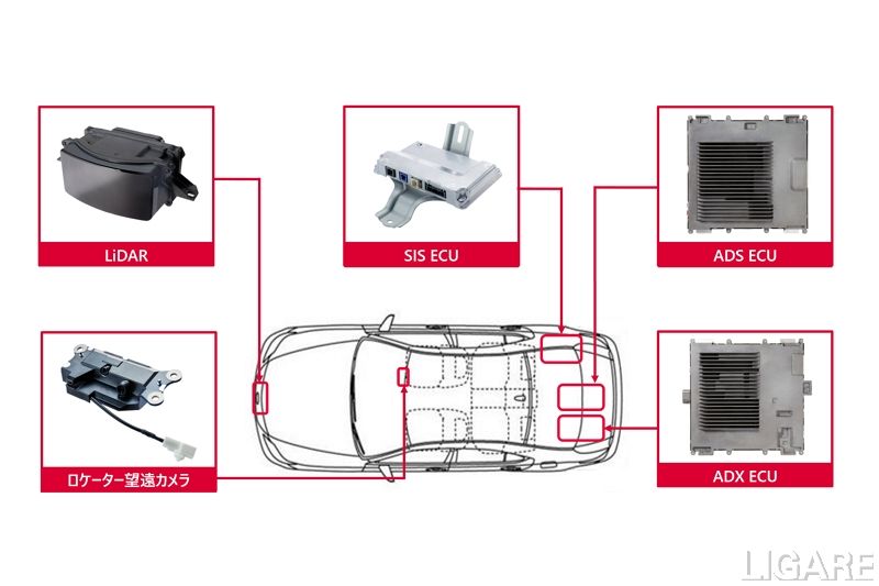 今回新たに開発した製品はLiDAR、ロケーター望遠カメラ、およびSIS(Spatial Information Service) 、ADS(Advanced Drive System) 、ADX(Advanced Drive Extension)の3種類のECUだ。LiDARは車両や道路の形状を検知し、ロケーター望遠カメラは2種類のカメラで自車の前方環境を検知する。今回デンソーの開発した製品は、車両から200m以上先まで検知することができる。