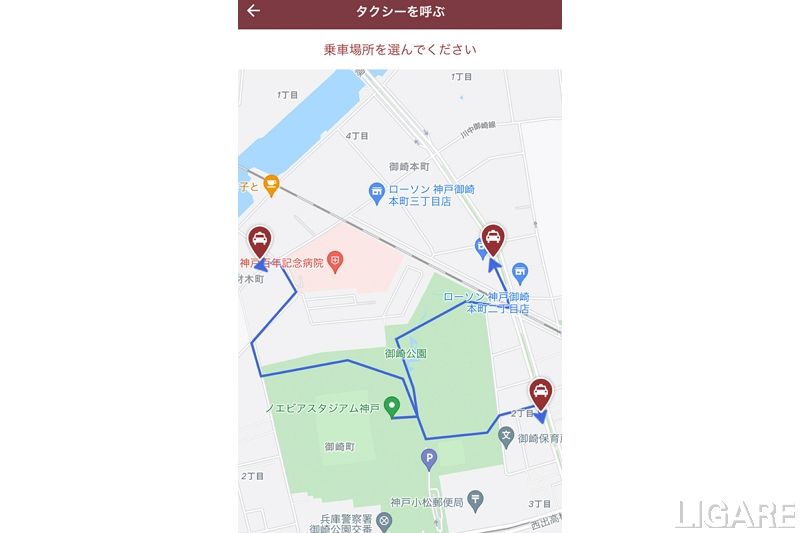 さらに、 試合終了後、会場内でのみ利用できるヴィッセル神戸に関するクイズを出題するゲーム機能を提供する。これにより、ユーザーの試合終了後の会場待機へのモチベーション向上を図る。また、混雑の少ない場所でタクシーに乗車できるよう、タクシー配車のオーダー時に複数の乗り場候補を設定する。これにより、混雑を避けたスムーズなタクシー配車手段を提案する。