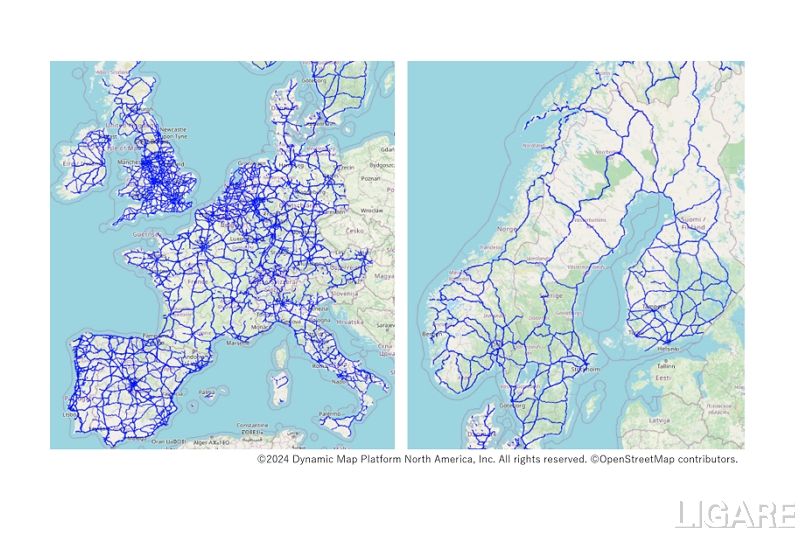 ダイナミックマッププラットフォーム株式会社(以下、DMP)は11月12日、欧州16カ国の高精度3次元地図データ(HDマップ)を新たに整備し、高速道路と幹線道路合わせて約27万kmのデータ提供開始を発表した。