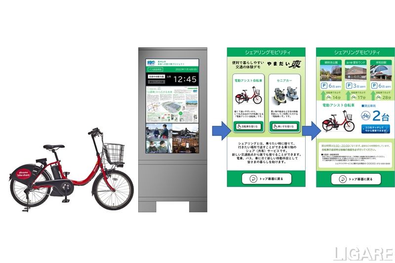 「DNPモビリティポート」は、住民や観光客、高齢者や若者など、誰にでもさまざまな交通が利用しやすい環境をつくり、周遊を促す移動最適化サービスだ。今回DNPは、10月に完成した「山直東」で、11月5日に新規路線バスの運行が始まることに合わせて、「DNPモビリティポート」を導入する。新規路線バスに対応した各バス路線の運行状況やシェアリングサービスの予約サービスなどを提供し、バス交通から電動アシスト自転車などのパーソナルモビリティへのスムーズな乗り換えなどを支援する。