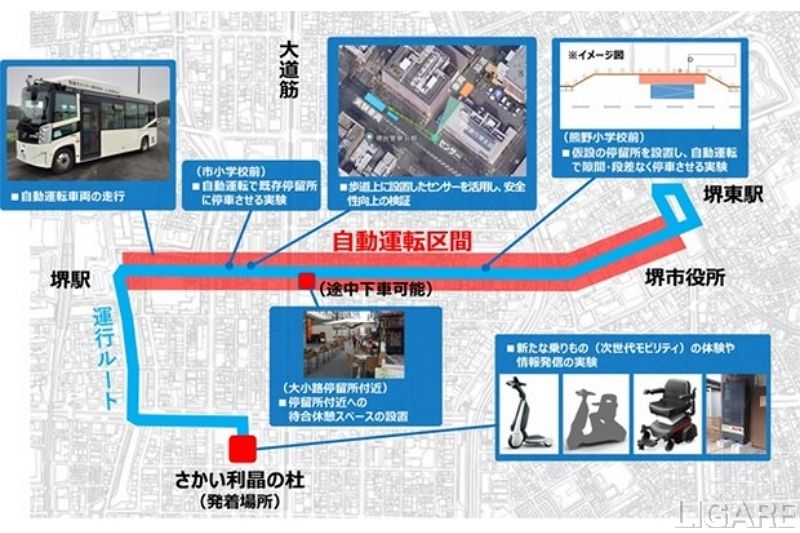 DNPは、大阪府堺市が11月11日~13日に実施した「自動運転などの最新技術を活用した実証実験(SMI都心ラインにかかる実証実験)」に参加している(SMIは、堺・モビリティ・イノベーション)。今回の検証は、同実証の一環として実施する。