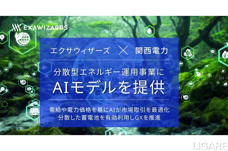 株式会社エクサウィザーズ(以下、エクサウィザーズ)は、E-Flow合同会社(以下E-Flow)に対して、分散配置した系統用蓄電池※の電力を最適な条件で市場取引するAIモデルを提供する。E-Flowは、関西電力株式会社(以下、関西電力)の100%出資会社だ。