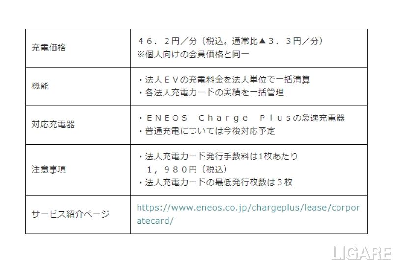 ENEOS、「ENEOS Charge Plus」の法人サービス開始
