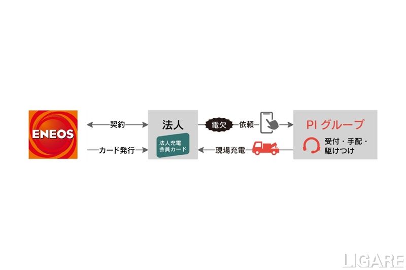 ENEOS株式会社(以下、ENEOS)は11月13日、「ENEOS Charge Plus法人充電会員カード」の付帯サービスとして、「電欠駆けつけサービス」を提供開始すると発表した。