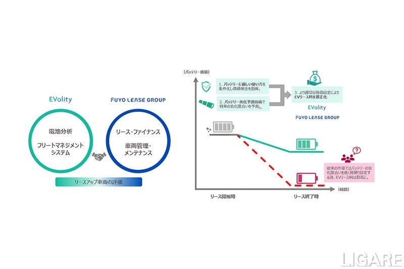 EVolity社と芙蓉総合リースの連結子会社である芙蓉オートリースは9月16日、EVolity独自の電池分析技術を用いたEVリースの提供開始を発表した。