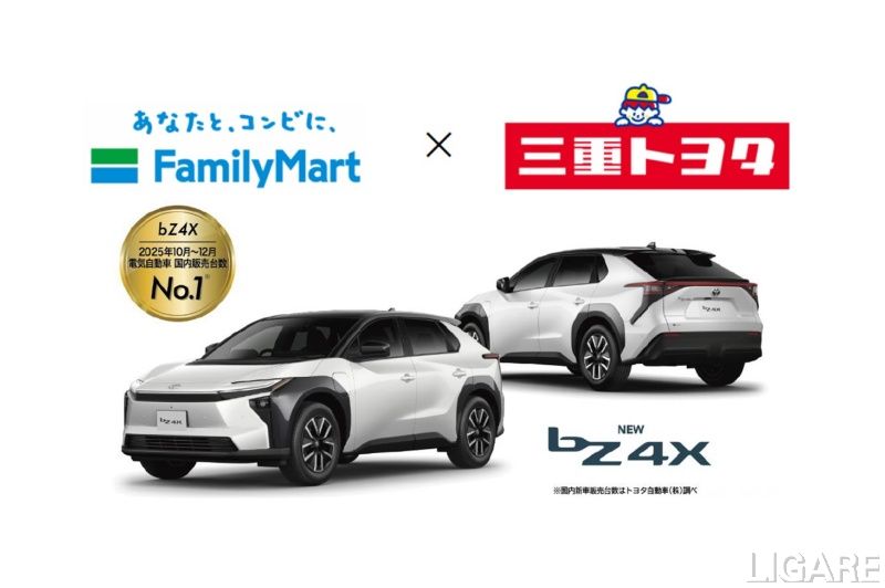 ファミリーマートと三重トヨタ、EV「bZ4X」などの試乗会を店舗で実施 補助金や充電方法等も説明 会員限定記事 2026/3/23(月) Post Share Pocket RSS ファミリーマートはこのたび、三重トヨタと共同で、ファミリーマート店舗の駐車場でトヨタの新型電気自動車「bZ4X」などの試乗会を三重県内のファミリーマート5店舗で開催したと発表。地域のにぎわいづくりに取り組む全国初の共同企画だという。 ※このコンテンツは会員限定です。無料会員登録すると続きをお読みいただけます。 会員登録済みの方はログインしてください。 ログイン ログイン メールアドレス パスワード ログイン情報を記憶 新規ユーザー登録 パスワードをお忘れですか ? LIGARE編集部h.s デジタルサイネージトヨタ充電設備 Post Share Pocket RSS 関連記事: トヨタ、BEV「bZ4X Touring」発売 bZ4Xの特長を継承しつつアウトドア向けに広さ確保 トヨタ、BEV「bZ4X」を一部改良しリース販売と一般販売開始 11月のEV販売台数が前月比約300台増 トヨタ「bZ4X」がけん引 川崎重工の「移動本能」が踏み込んだ先にある、アフター万博のモビリティ社会とは?【独占インタビュー】 損保ジャパンとみつばモビリティ、ライドシェア事業者向けの安全研修パッケージを提供開始