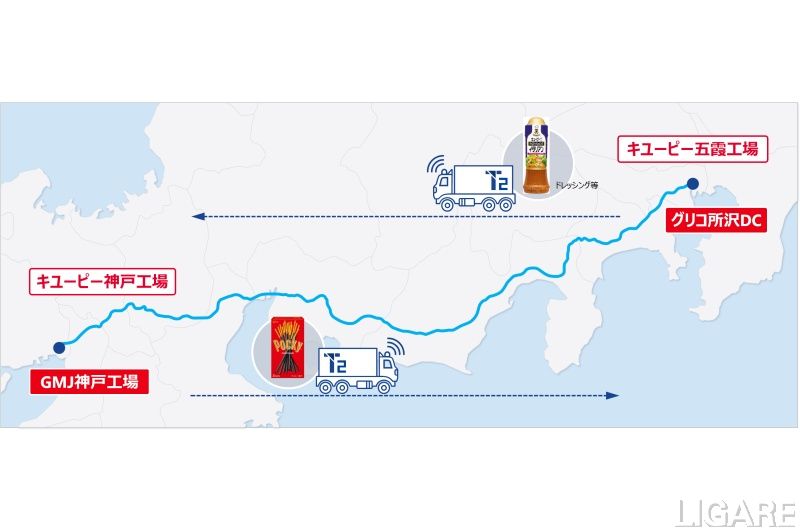同実証の目的は、将来に向けレベル4自動運転トラックを活用する上で最も効果的な輸送オペレーションの構築を検討することだ。レベル2自動運転トラックを使用し、7月17日以降、計4回(往復)で実施する。実施区間は、関東・関西間の高速道路上の一部であり、往路ではキユーピー五霞工場→キユーピー神戸工場間、復路ではグリコマニュファクチャリングジャパン神戸工場→グリコ所沢DC間で貨物を積載する予定だ。