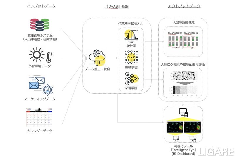物流ソリューションなどを提供するGROUNDは28日、物流施設における業務ナレッジや内部・外部データを蓄積・解析し、在庫保管効率や物流作業効率を向上させるAI物流ソフトウェア「DyAS(ディアス)」の提供開始を発表した。