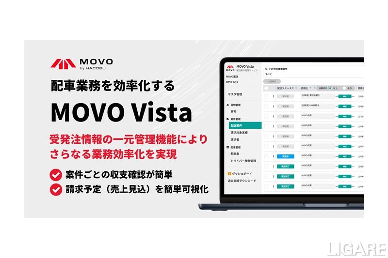 株式会社Hacobu(以下、Hacobu)は12月21日、配送案件管理サービス「MOVO Vista(ムーボ・ヴィスタ)」の機能拡張を発表した。これにより、発注情報だけでなく、受注情報もMOVO Vistaで管理できるようになったという。