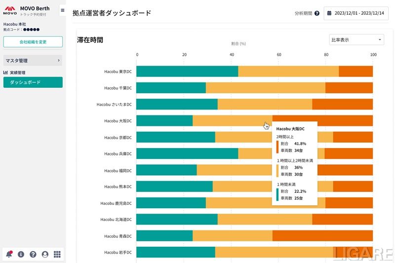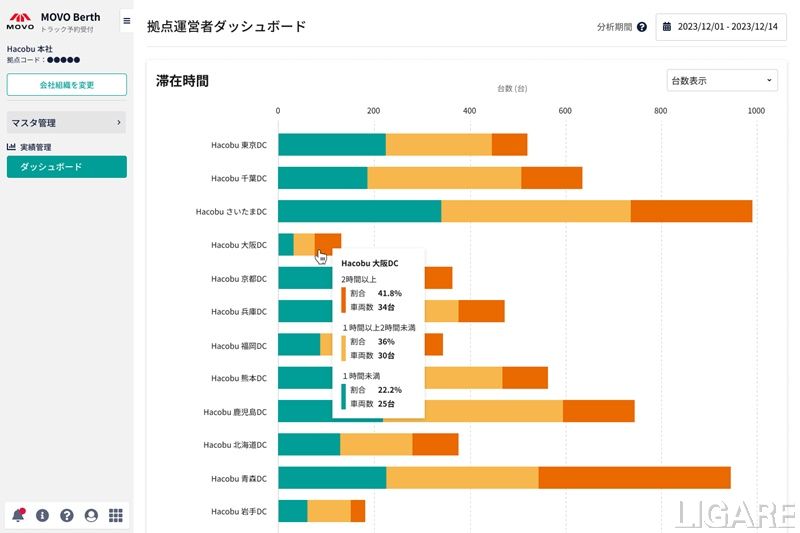 株式会社Hacobuは12月25日、「MOVO Berth」に全社の車両滞在時間状況を一元的に可視化・比較できるダッシュボード機能実装を発表した。