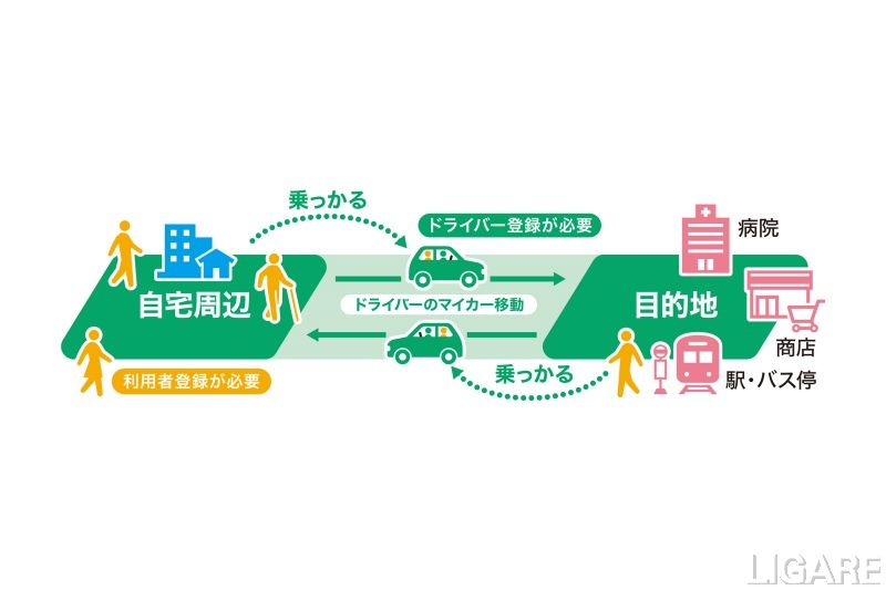 同サービスは、常陸大宮市が認定したドライバーと、移動したいユーザーを、博報堂DYグループが開発したシステム上でマッチングし、ドライバーが自家用車でユーザーを目的地まで送迎する共助型MaaSだ。これまでに富山県朝日町などで実証を行っている。