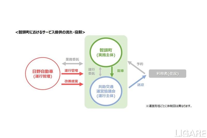 また、同サービスは、鳥取県智頭町で提供を同日より開始した。遠隔による運行管理業務を専門に受託する事業は、メーカーを含む民間企業として全国初の取り組みとなる(日野調べ)。なお、日野は、今後も自家用有償旅客運送の支援に留まらず、地域公共交通における課題解決に貢献していくと述べている。