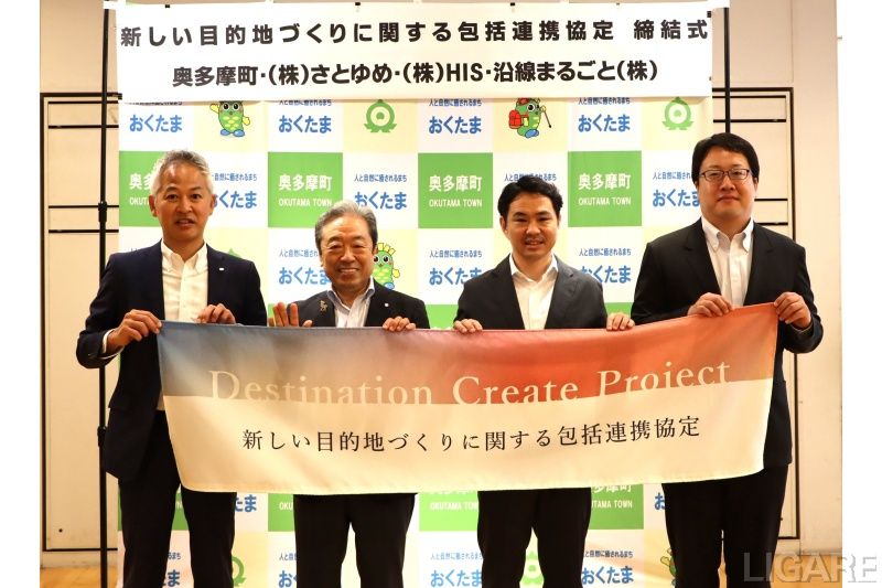 沿線まるごと社、東京都奥多摩町、さとゆめ社、エイチ・アイ・エス(以下、HIS)は6月20日、「新・目的地創出事業-Destination Create Project-」(以下、DCP)※1に関する包括連携協定締結を発表した。