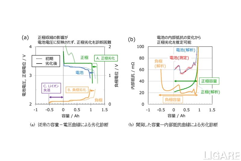 同社は、これまで蓄電システムの高信頼化・長寿命化に向けて、2007年度から三元系LIBの充電率と電池電圧のデータ解析から、電池の劣化状況を非破壊で診断する技術を発表してきた。三元系とは、正極材料にレアメタル(コバルト・ニッケル)を用いたものだ。