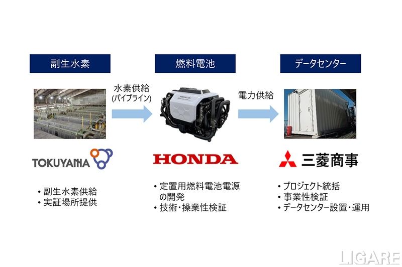 本田技研工業株式会社(以下、ホンダ)らは12月25日、「副生水素と車両からのリユースを想定した定置用燃料電池電源のデータセンター向け実証」実施を発表した。同実証は、国立研究開発法人新エネルギー・産業技術総合開発機構(NEDO)の「水素社会構築技術開発事業/地域水素利活用技術開発/地域モデル構築技術開発」事業として採択され、検討を進めてきたものだ。