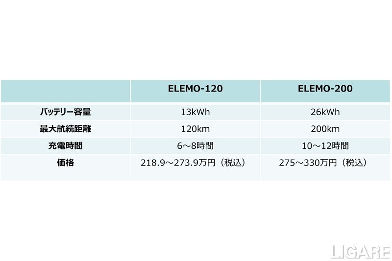 「ELEMO」は、HW ELECTROが製造、販売する次世代の多用途小型商用EV車だ。2021年4月に小型商用EV車としてナンバーを取得しており、7月24日より販売を開始する。行動範囲に合わせた、ELEMO‐120とELEMO-200という2つのグレードがある。荷室のカスタマイズが可能で、あらゆる業態に対応できる。