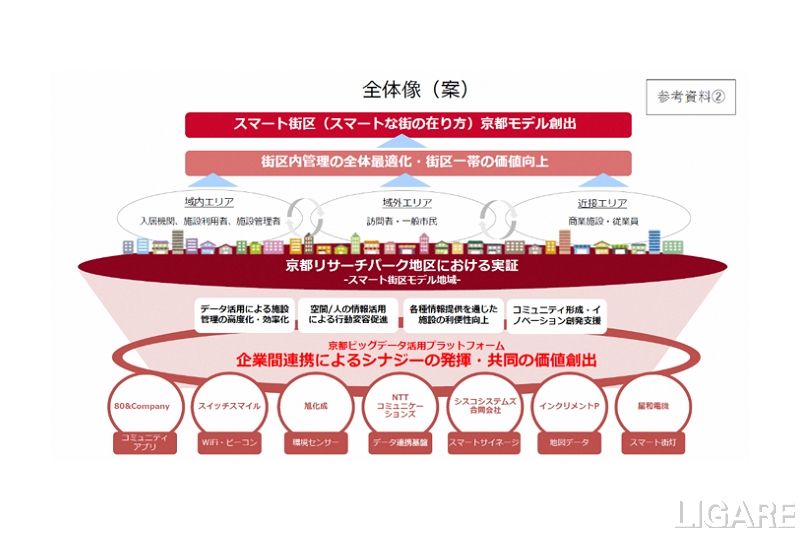 今回、実証実験を行う「京都ビッグデータ活用プラットフォーム」は、大学や研究機関、企業等の多様なプレイヤーが参画する官民プラットフォームだ。京都府、一般社団法人京都スマートシティ推進協議会及び公益財団法人京都産業21が推進している。新たなサービスやアライアンス創出の場を提供し、産業活性化を図るとともに、データ活用に基づく超快適スマート社会の創出を目指す。2021年1月には「スマート街区ワーキンググループ」を発足・開催し、京都リサーチパーク地区を対象として新規プロジェクトの始動に向け準備を進めてきた。