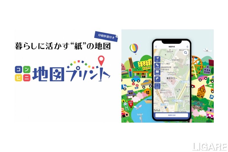 「コンビニ地図プリント」は、コンビニエンスストアで気軽に地図を印刷・商用利用できる。地図デザインや多言語表記の豊富さから多様なカスタマイズが行える。印刷許諾付き地図であるため、公的機関への提出資料などのビジネスニーズ、旅行・イベントなどのプライベートニーズなど、幅広い分野での活用が可能だ。また、最近テレワークの広がりにより、身近なプリント環境であるコンビニのマルチコピー機の需要が伸びている。