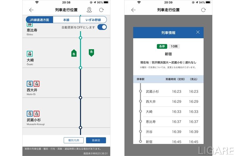 相鉄線アプリ、相鉄・JR直通線の列車走行位置・時刻情報表示を提供開始