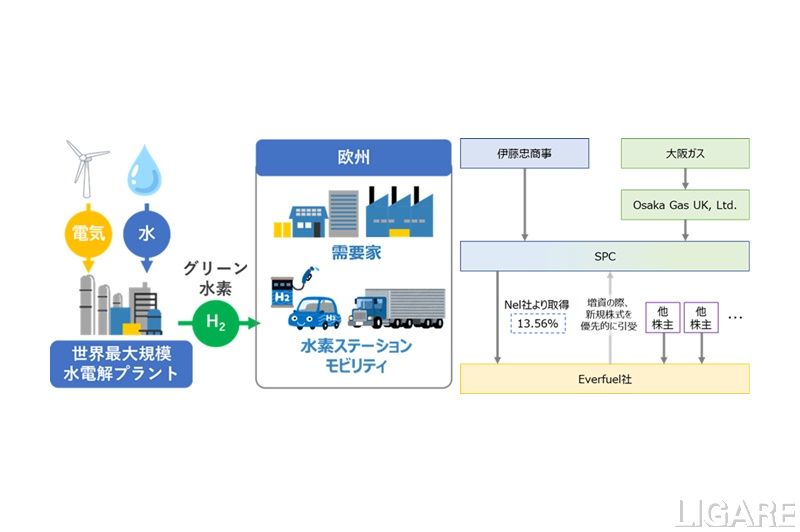 伊藤忠商事ら、グリーン水素製造推進のEverfuel社に出資