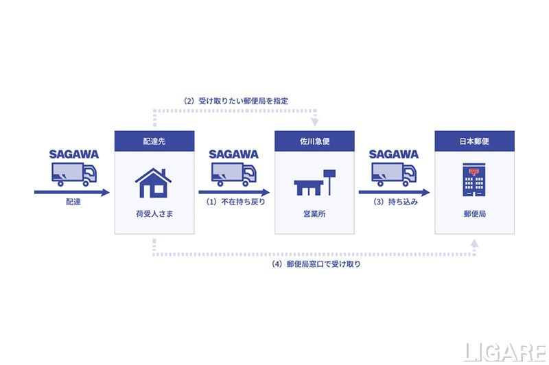 日本郵便株式会社(以下、日本郵便)と佐川急便株式会社(以下、佐川急便)は10月20日、佐川急便において不在持ち戻りとなった荷物※を、郵便局の窓口で受け取れるサービスを10月23日より開始すると発表した。