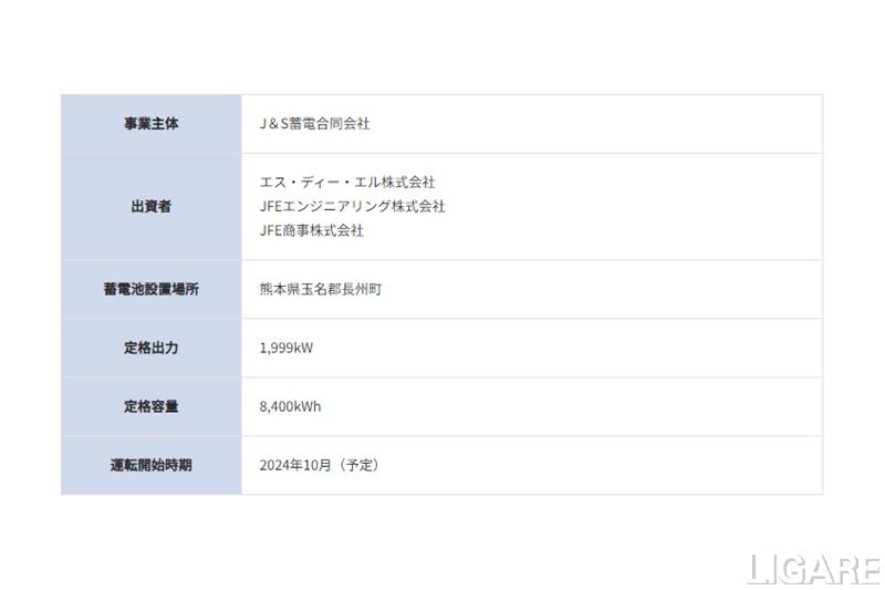 JFEエンジニアリング株式会社(以下、JFEエンジニアリング)ら3社は7月27日、J&S蓄電合同会社を設立し、系統用蓄電池事業に本格参入すると発表した。