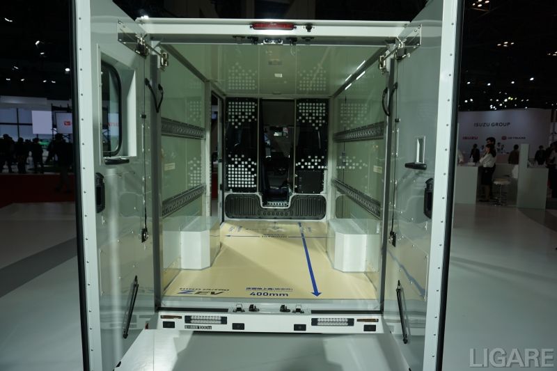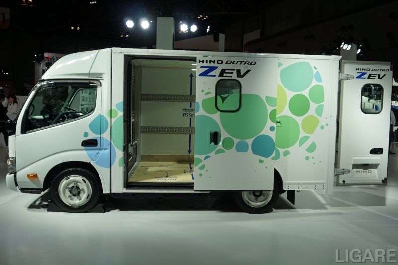日野が今回展示した実車両は、小型BEVトラック「日野デュトロ Z EV」と燃料電池大型トラック「日野プロフィア Z FCV プロトタイプ」の2種類。コンセプト車両を展示しなかった意図について、小木曽社長は「ジャパンモビリティショーのテーマと向き合い(中略)人流・物流に携わる方々につながるテーマに集中しようと考えた」と説明した。「日野デュトロ Z EV」は、超低床構造によって荷役作業や乗り降りを容易にし、ドライバーの負担軽減に貢献する小型BEVトラックとして展開している。普通免許でも運転が可能で、特にラストワンマイルの配送現場を想定した車両だ。