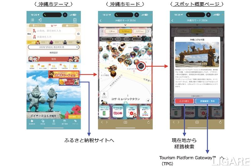 ほかにも、同事業では、JTB沖縄およびJTBが提供する Tourism Platform Gateway(TPG)とのサービス連携で、体験を含めた沖縄市本来の魅力的な情報・コンテンツの提供を行う。目的は、誘周・遊観光時の沖縄市モード利用促進や、沖縄市観光ポータルサイト「コザウェブ-Kozaweb-」のPV数向上だ。