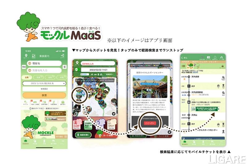 また、同社は、乗換案内アプリ内の着地型共通インターフェース「スマートシティモード」を、河内長野市専用の「モックルMaaS(河内長野モード)」として開発。市内の二次交通や観光・体験コンテンツなどの情報やサービスと、ルート案内をワンストップで提供する。さらに、特設web サイトを併用し、アプリ未使用者にも気軽にアクセスしてもらえるよう、より便利に利用ができるアプリのダウンロードを促進していく予定だ。