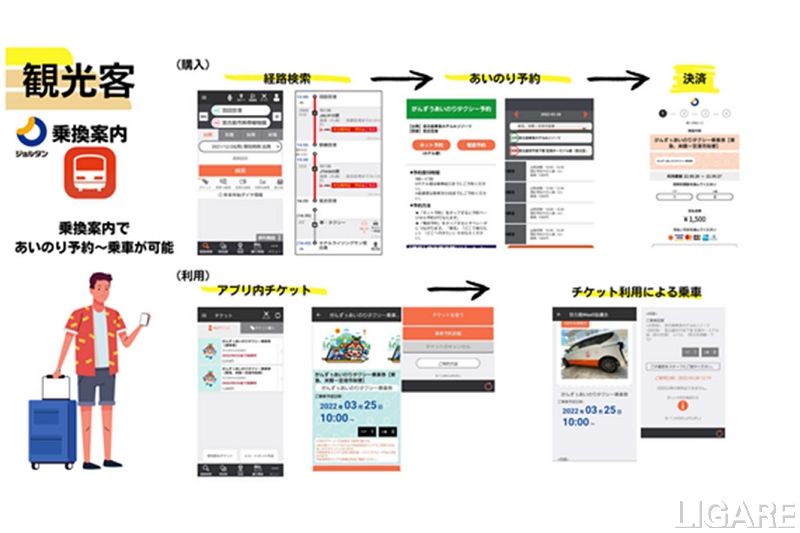 2021年度の事業では、2020年度の実証で得た課題を踏まえ、ジョルダン株式会社のアプリ「乗換案内」との連携強化を行う。同アプリは、経路検索やモバイルチケット機能が搭載されている。今回の連携強化により、あいのりタクシーと連携した企画チケットを発行し、収益性の効果の検証等を行う。さらに、沖縄総合事務局は、公共交通の利用しやすい環境を整え、交通渋滞の解消等を図る。