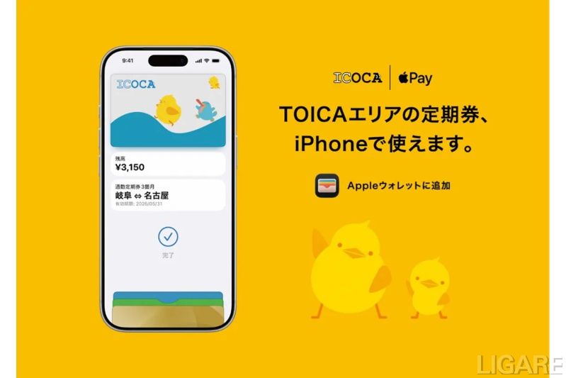 TOICAのモバイルICサービス、Appleウォレットに対応 アプリで定期券購入やチャージが可能に 会員限定記事 2026/3/19(木) Post Share Pocket RSS 東海旅客鉄道(以下、JR東海)および西日本旅客鉄道(以下、JR西日本)は3月17日、JR西日本のApple PayのICOCAの仕組みを活用したTOICAのモバイルICサービスが、Appleウォレットに対応すると発表した。 ※このコンテンツは会員限定です。無料会員登録すると続きをお読みいただけます。 会員登録済みの方はログインしてください。 ログイン ログイン メールアドレス パスワード ログイン情報を記憶 新規ユーザー登録 パスワードをお忘れですか ? LIGARE編集部h.s AppleJR東海JR西日本アプリスマートフォン交通系ICカード Post Share Pocket RSS 関連記事: JR西日本ら、AIを活用した旅行プランとタクシー予約機能提供へ 関西MaaSアプリ(仮称)にも採用 JR西日本、MAB提供開始 JR東、モバイルSuicaにコード決済搭載 上限超の買い物も可能に JR西日本、モバイルICOCAのシステムを活用しAndroid版「TOICA」を2026年3月17日より開始 将来は充電不要の EV も?京大発ベンチャーが市場投入を急ぐペロブスカイト太陽電池の現在地 スズキが組織改定、次世代事業本部に投資・共創推進部新設 EV関連では統合再編や廃止も