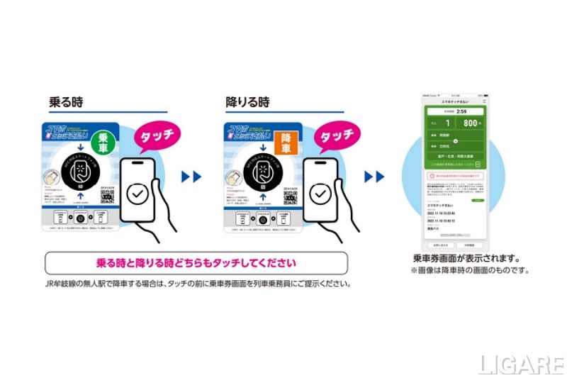 同実証では、バス車内や駅に設置されたNFCタグにスマートフォンをかざすだけで、徳島県南部地域のバスと鉄道の利用・決済が可能な「スマホタッチ支払い」を提供する。