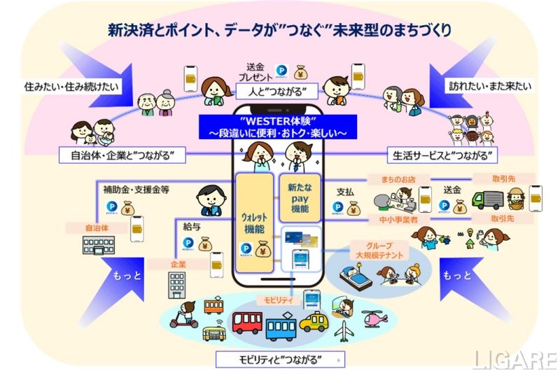 この導入により、企業間取引や従業員への給与、自治体からの補助金給付などへの展開ができる。さらにはWESTERポイントやデータの利活用により地域経済の活性化に貢献し、未来型のまちづくりに挑戦していく。