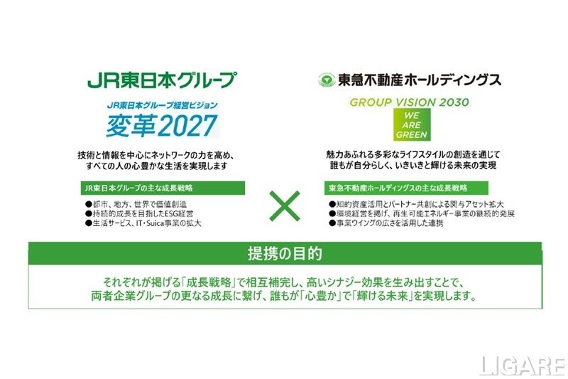 提携の目的は、JR東日本グループが掲げる「変革2027」や東急不動産ホールディングスの「GROUP VISION 2030」など、両社のビジョンを連携によって加速させることにある。この連携により、地方を中心とした住宅事業や再生可能エネルギー事業を通じたまちづくりを促進し、地方創生を実現していく。