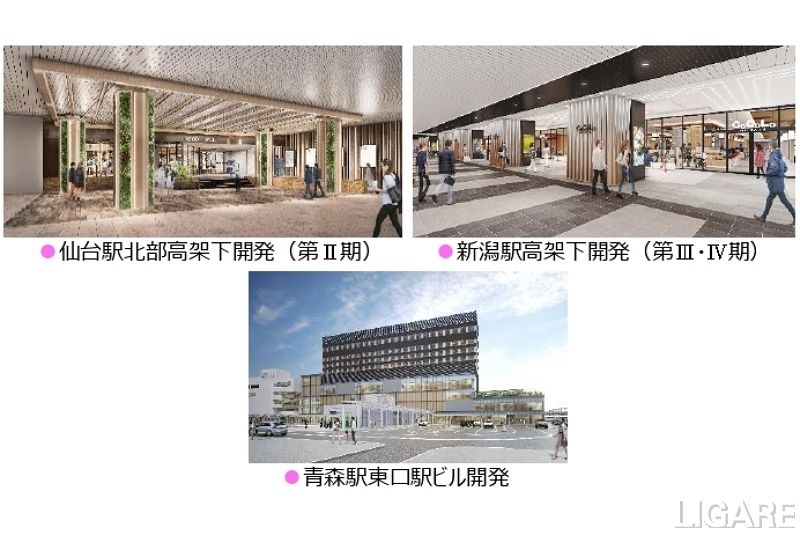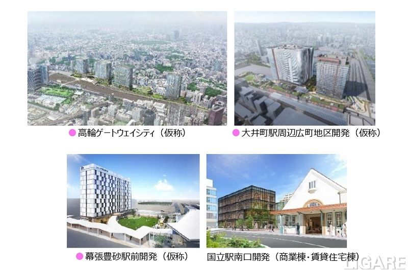 「駅を中心としたまちづくり」では、東京の高輪ゲートウェイシティ(仮称)のまちづくりを推進する。ほかにも、東京では大井町駅周辺広町地区開発(仮称)、幕張豊砂駅前開発(仮称)、nonowa国立SOUTH(仮称)においてもまちづくりを進めるという。幕張豊砂駅前開発(仮称)では、歩行者ネットワークの整備完了とホテルの開業を2024年春に予定しているとのことだ。nonowa国立SOUTH(仮称)も2024年春に開業する。一方、地方中核都市と連携したまちづくりでは、仙台駅、新潟駅、青森駅で進める予定だ。
