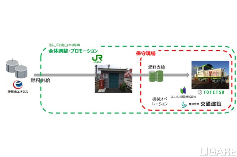 具体的な取り組み内容としては、伊藤忠エネクスが、リニューアブル燃料メーカーであるNeste OYJのRDを伊藤忠商事を通じて調達する。JR東日本は、ユニオン建設、東鉄工業、交通建設と連携し、鉄道用の保守用機械ならびに工事用重機械にRDを活用し、JR東日本商事は供給・活用のマネジメントを実施。これにより、バイオ燃料の利用拡大を促進し、東京都の鉄道分野での脱炭素化推進に取り組むという。使用期間は2025年10月~2027年3月、山手線、中央線、常磐線を走行予定の主な線区とし、年間総走行距離8000km、約172tのCO2削減を見込んでいるという。