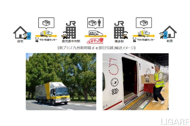サカイ引越センターは1月6日、九州旅客鉄道(以下、JR九州)と連携し、JR博多駅とJR鹿児島中央駅間の九州新幹線を使用した即日引越プラン「九州新幹線de即日引越」の発売開始を発表した。