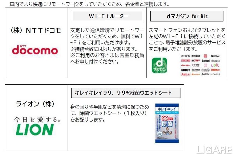 なお、快適なリモートワークを実施するために、株式会社NTTドコモ(以下、NTTドコモ)、ライオン株式会社(以下、ライオン)とも連携する。NTTドコモは安定した通信環境などのためのWi-Fiルーター、および電子雑誌読み放題サービスを提供する。ライオンは、除菌ウェットシートを配布する予定だ。