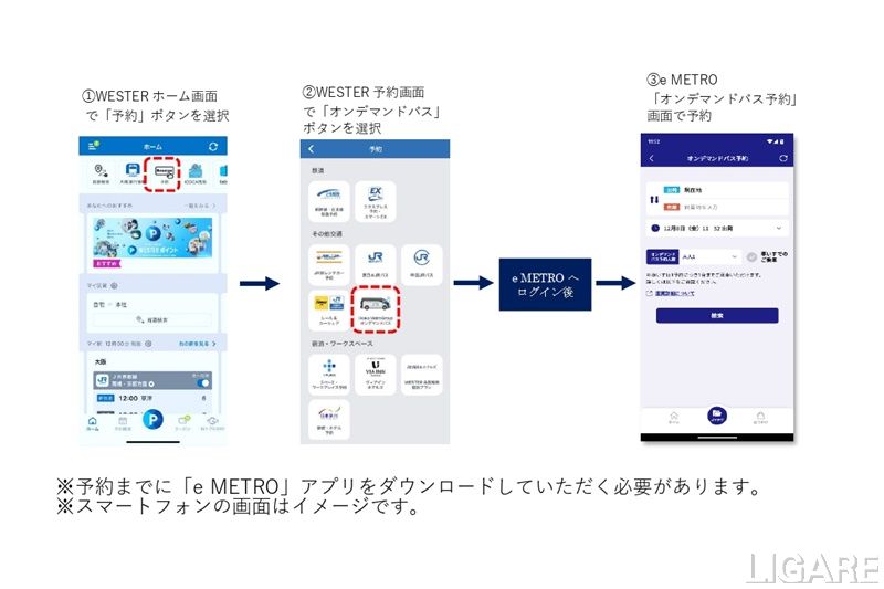 第一弾として、「WESTER」アプリ内で Osaka Metro Groupオンデマンドバスの予約を1月19日より開始する。