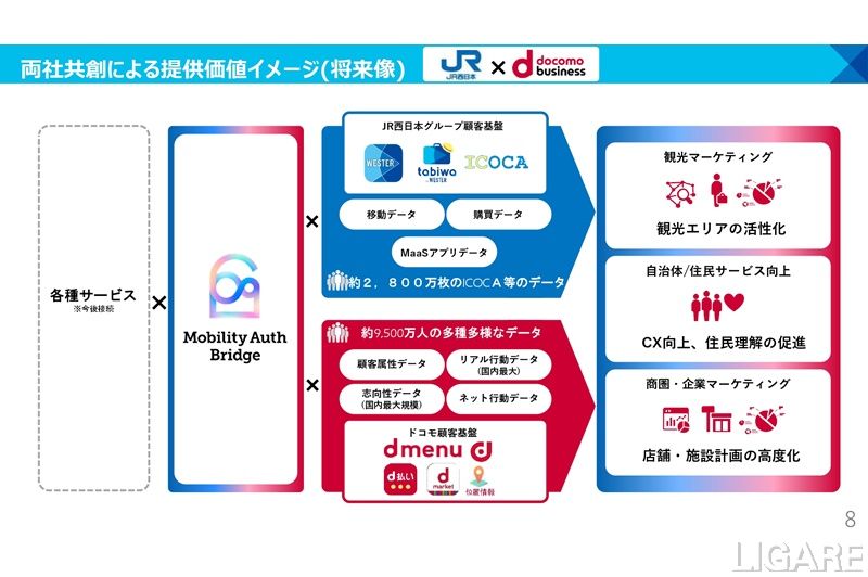 なお、JR西日本とNTT Comは、今後パートナーと一体で「移動・暮らしのための共通ID」をさらに発展させ地域課題の解決に努める。同時に、都市OSでの活用を見据えた「誰もが住み続けたい、もっと訪れたい“まちのID基盤”」としての展開を目指すと述べている。